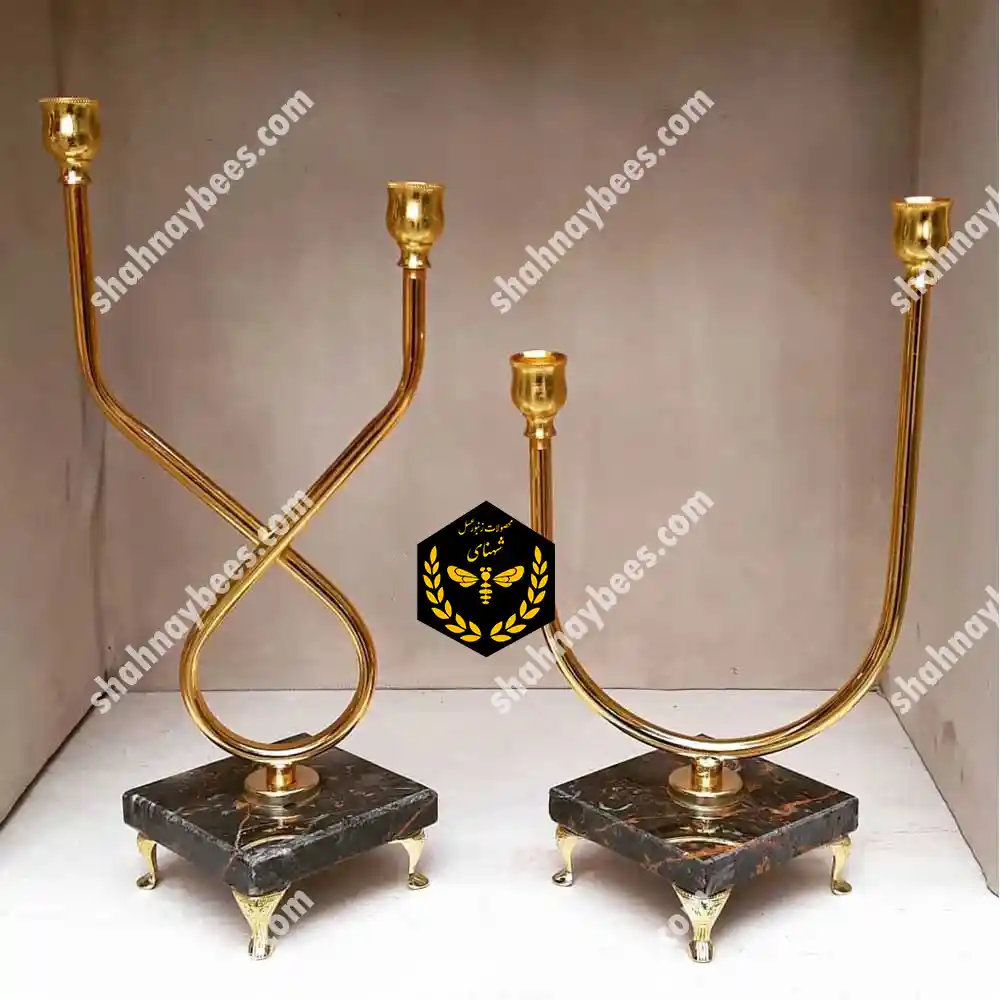 شمعدانی پایه سنگی استوانه ای با طرح U و لا به ارتفاع 35 سانتی متر
