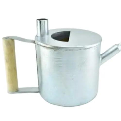 این قوری از جنس گالوانیزه و دو جداره بوده و دسته آن چوبی می باشد. دارای دو سوراخ بزرگ و کوچک است و امکان قرار دادن آن برای بر روی حرارت آتش امکان مذیر است. از موم های ضایعاتی زنبورستان خود برای استفاده و ذوب در موم ریز استفاده کنید.