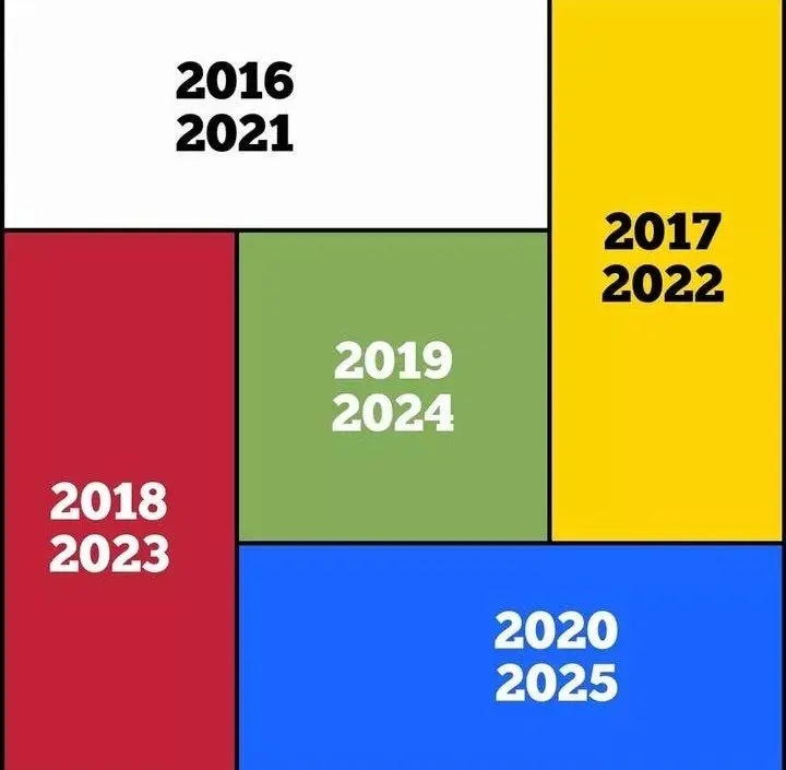 🔵 رنگ اّبی مربوط به سال های: 2020, 2025, 2030 و …